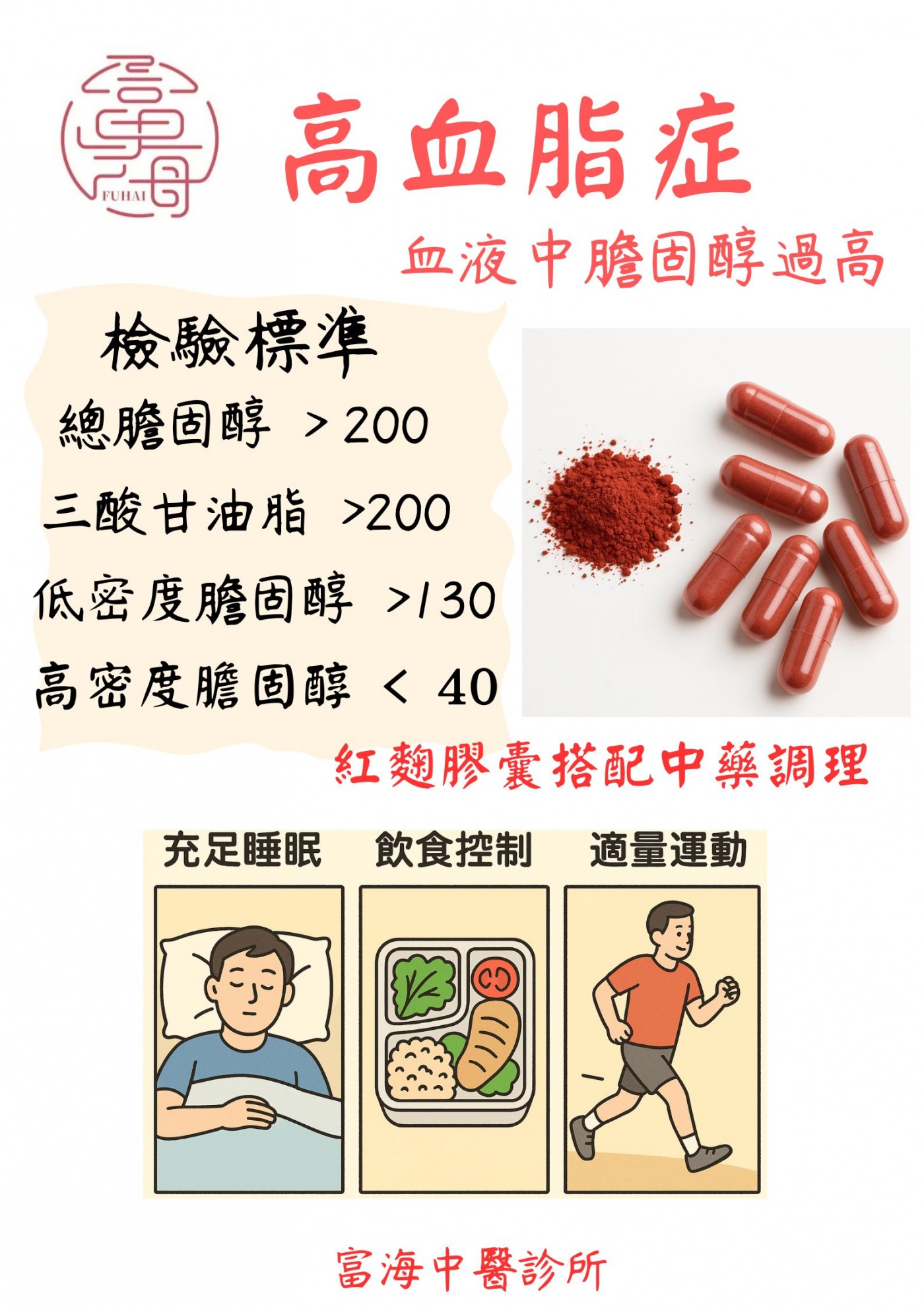 為經衛福部核准中藥,紅麴萃取的成分,經研究可降低血脂,療程通常為3個月,搭配中藥調理體質更能改善症狀。
